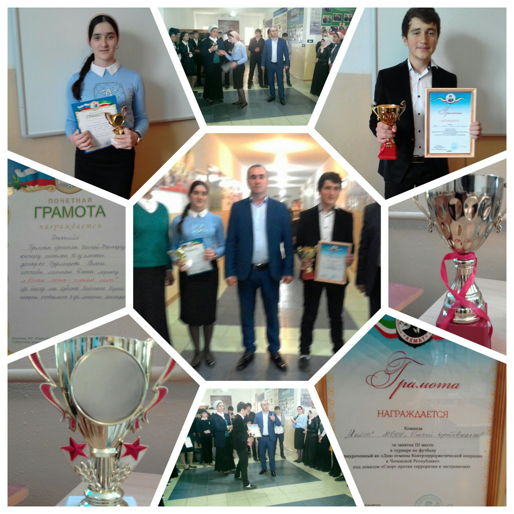 24.04.2017Районный турнир по футболу, приуроченный ко "Дню отмены Контртеррористической операции в Чеченской Республике" под девизом "Спорт против терроризма и экстремизма" за занятое 3 место-команда "Нийсо" МБОУ "Ишхой-Юртовская СШ".